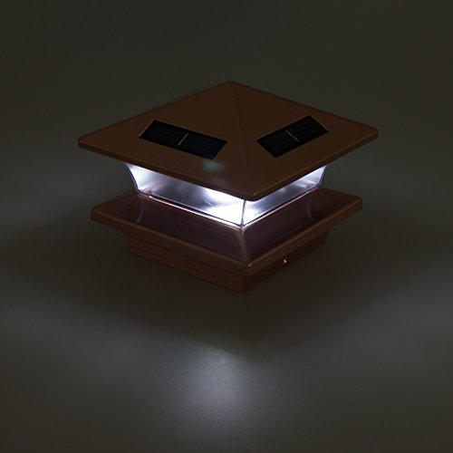 SOLAR POWERED - These post cap lights utilize the free natural power of the sun to operate. 4 crystalline solar panels absorb light during the day to recharge the 2 Ni-CD batteries (included) for use at night eliminating your need to swap out batteries or install a costly outdoor power system.