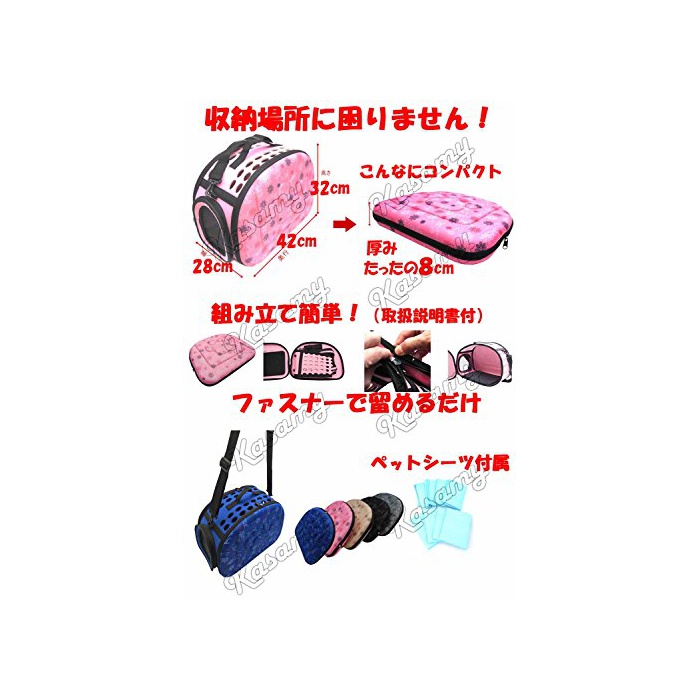 Kasamy 애완동물 캐리 백 접어 서 보 케이스 숄더 견검 벨트 부개와 고양이 소동물용 【 캐리 와 시트 의 2점 세트 】