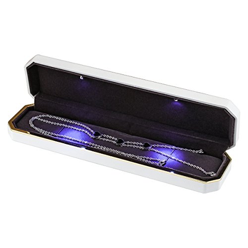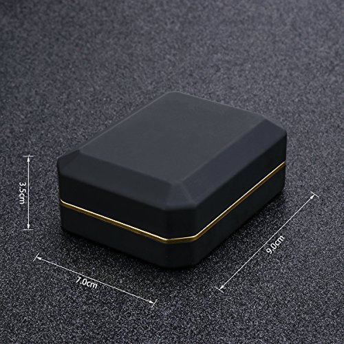 -. Feature : ★High-grade rubber paint, paino paint material and velvet inside / ★LED light turns on automatically when you open the lid, turns off when closed / ★With gold trim and velvet inside, the box looks so perfect and the LED light worked perfectly and really made the diamonds glow and sparkle / ★Create a romantic atmosphere and give your lover a big surP.R.Ise / ★Perfect for engagement ring, ring, pendant & earing; for propose, annivesary, wedding and other occasions