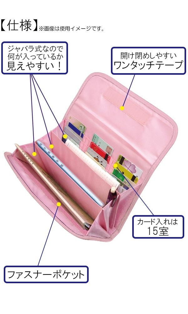 | 仕様 | カード収納枚数:15枚 ファスナーポケット:1つ ジャバラ式ポケット:1つ(3室) |