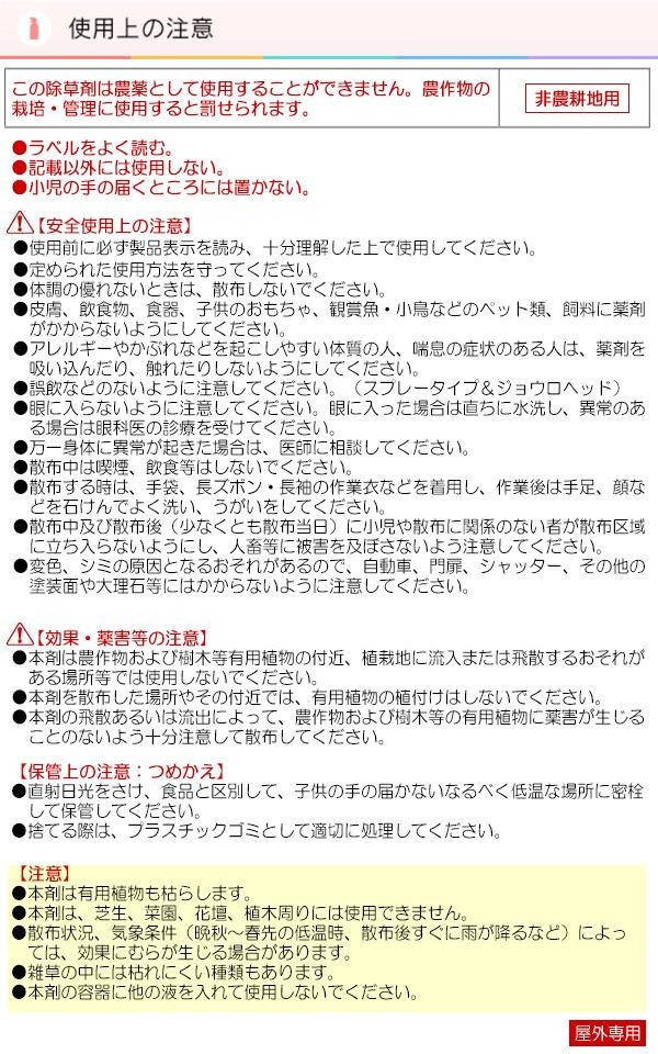 | 仕様 | 非農耕地用 性状:淡黄色水溶性液体 |