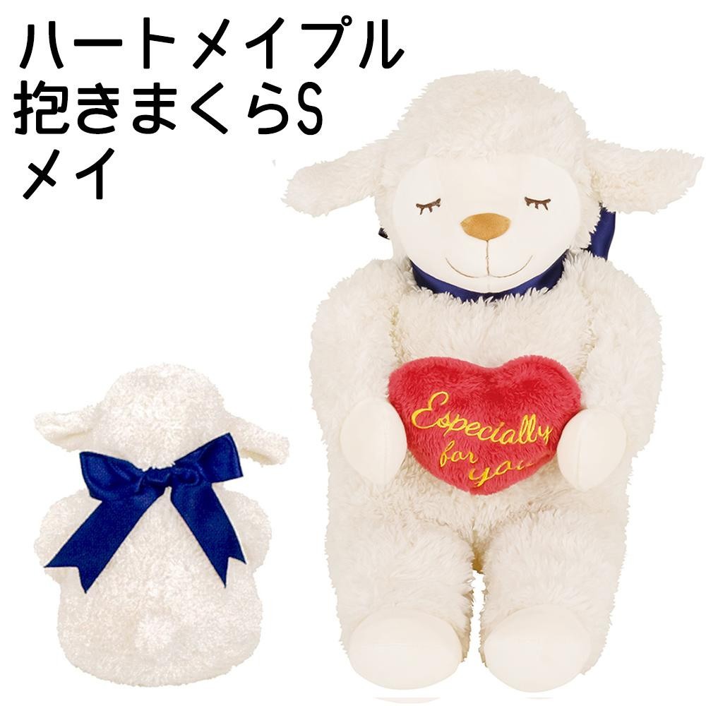 ふわふわなひつじのメイがハートを持って、少しおめかしをしたデザインの抱きまくら。伸縮性のあるボア生地と、羽毛みたいに柔らかい綿で温かく柔らかい手触り♪大きなリボンもアクセントとなりプレゼントにオススメです!! |