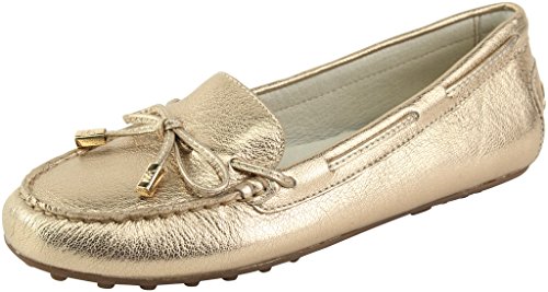 The Daisy Moccasin flats by Michael Kors add the perfect amount of flair to your outfit. The leather upper is topped with a bow and gold tone hardware; turning these comfortable moccasins into a fashion piece for any look.Feature
