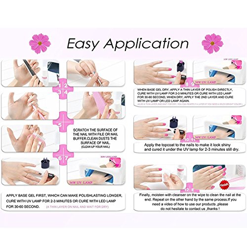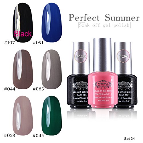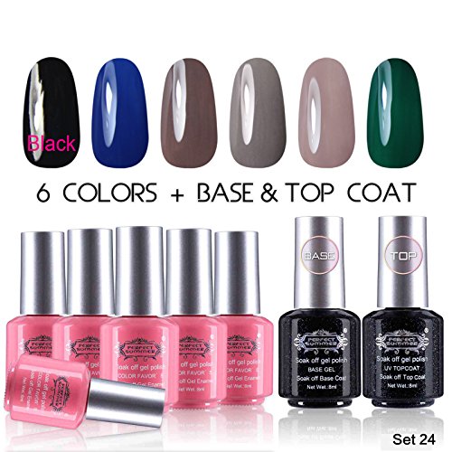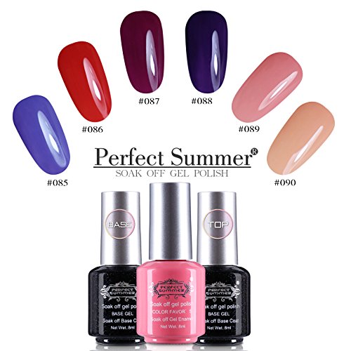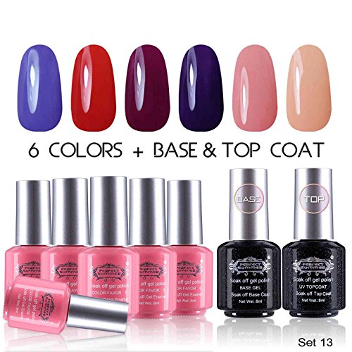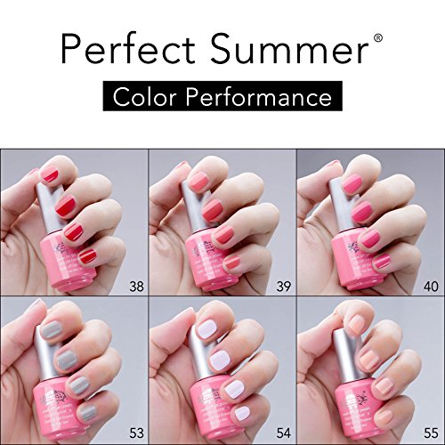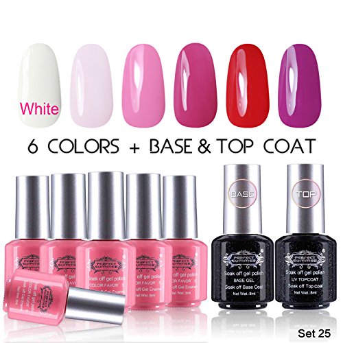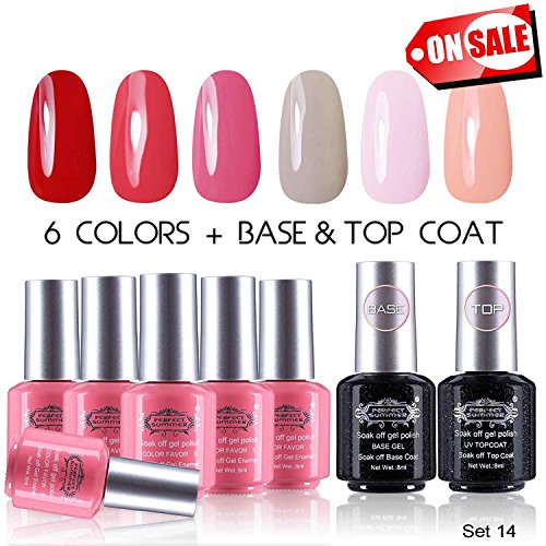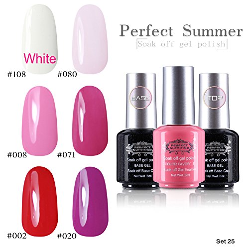 Perfect Summer Gel Nail Polish UV/LED Soak Off, "Spring Garden" Pure Colors Set with Clear Base Coat and Top Coat - Pack of 8, 8ml Each (Starter Kit #14)
