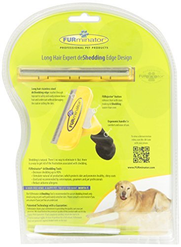 By reducing shedding up to 90%, the FURminator deShedding Tool enables you to share your home with your dog, without surrendering it to his hair. The Long Hair deShedding Tool for Large Dogs is specially designed for dogs that are 51-90 pounds with hair that is longer than 2 inches. The 4-inch long hair stainless steel edge reaches deep beneath your dog's long topcoat to safely remove undercoat and loose hair, The FURejector button cleans and removes loose hair from the tool with ease.Feature