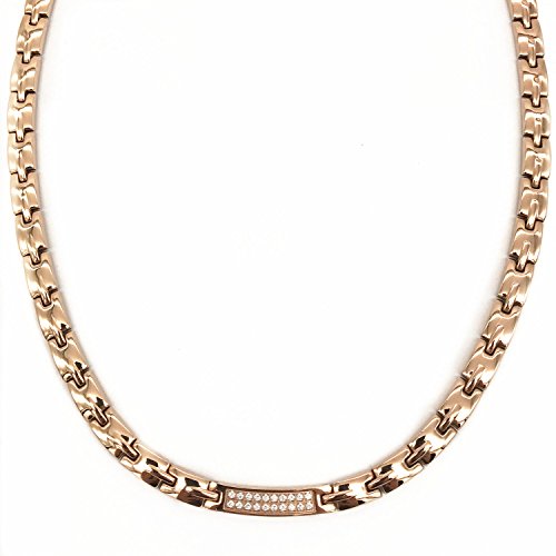 Fitaco (TM) germanium hematite necklace stainless metal allergy-free zircon fashion Rose Gold