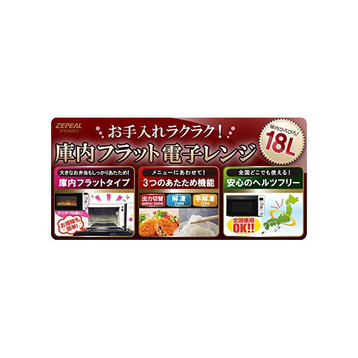 원본상품명: ZEPEAL フラット電子レンジ(ヘルツフリ?) 庫?容量18L ホワイト DFR-M2015