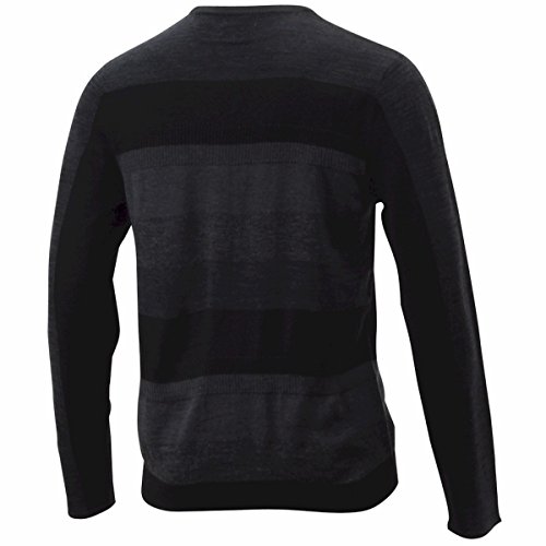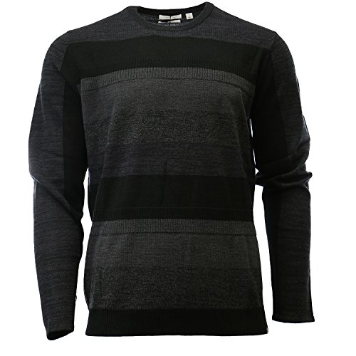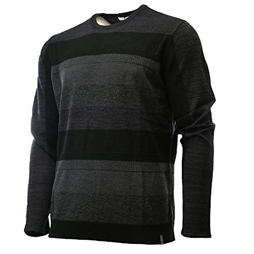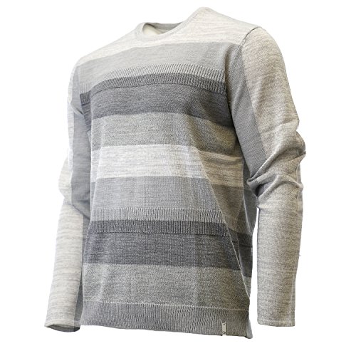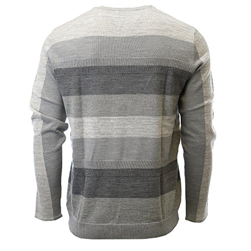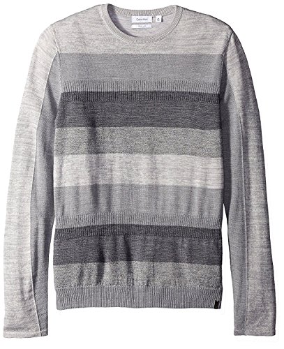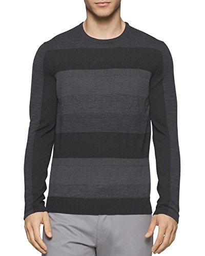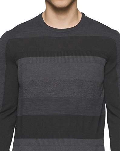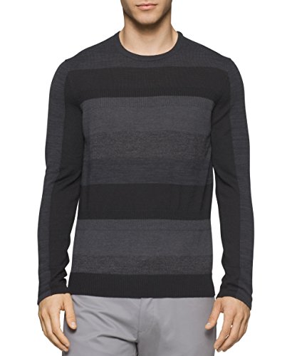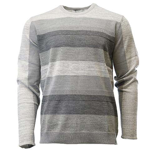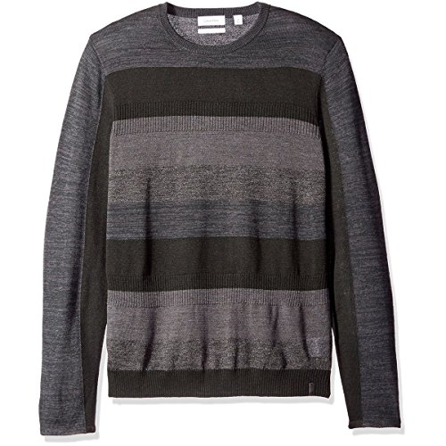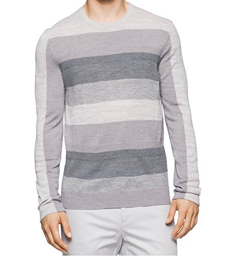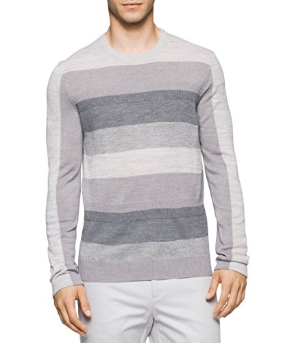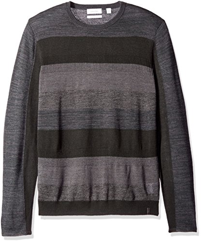 Product DescriptionThis merino acrylic blend crewneck sweater features a modern striped and rib block pattern.0