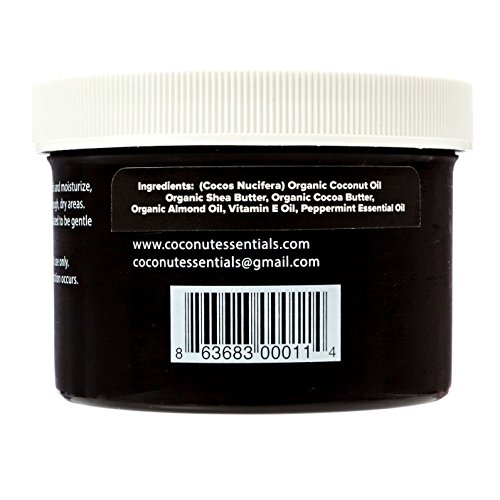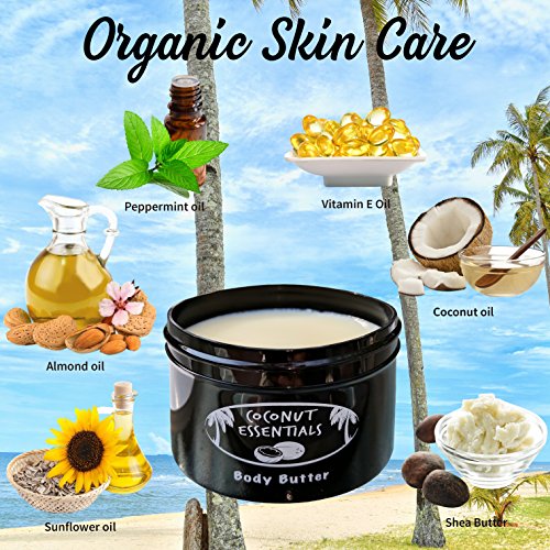 Coconut Essentials BODY BUTTER Organic Skin Care MOISTURIZER - Coconut Oil, Vitamin E, Shea, Peppermint, Almond, Cocoa and Sunflower - for...