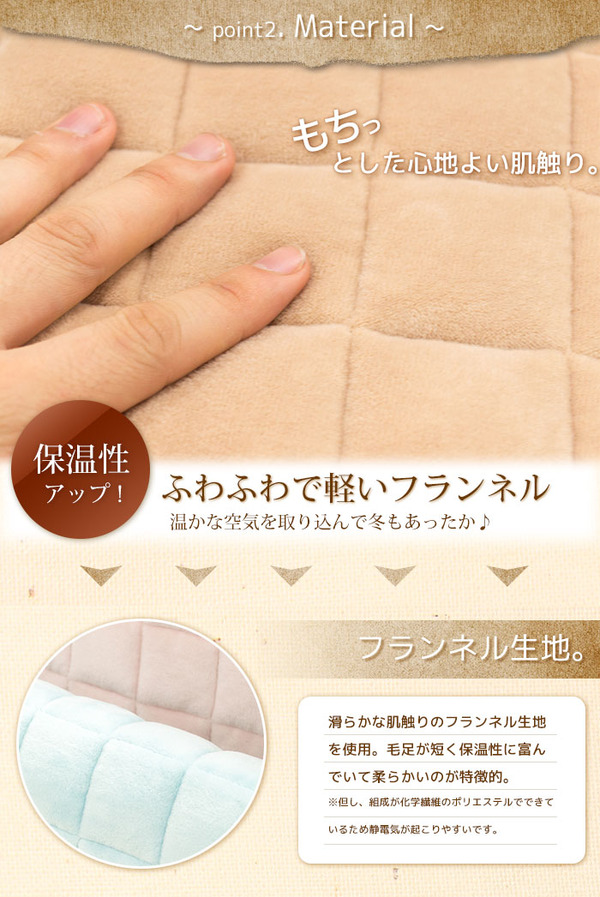 注意点:組成が化学繊維のポリエステルを多く占めているため静電気が発生しやすい仕様となっております。