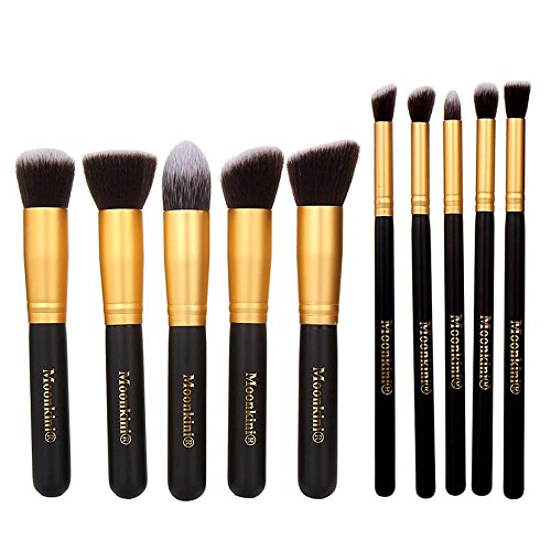 Moonkini 10 pcs Premium Synthetic Kabuki Makeup Brush Set Cosmetics Foundation Blending Blush Eyeliner Face Powder Brush Makeup Brush Kit