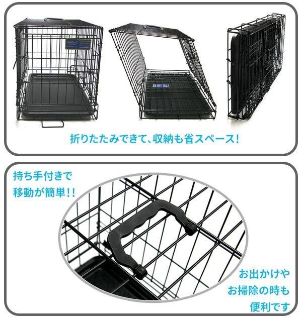 | 簡単に組み立て・折り畳みができるペットケージ。スペースによって縦&横置きOK!!災害時の避難・移動用にも活躍します。 |