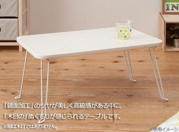 | 木目鏡面加工の天板がおしゃれなテーブルです。 |