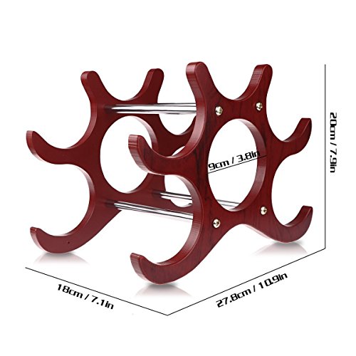 EASY TO USE AND SET UP - Natural wood wine rack for space efficient, easy to set up, universal use for most wine, it can storage up to 6 bottles.