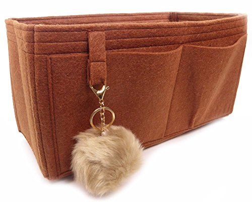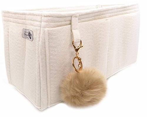 Product Description Felt handbag Purse organizer inserts not only help you be more organized, they also add some great structure. This size was meant to fit the Louis Vuitton Neverfull GM, but can fit in most bags with similar dimensions. This organizer measures approx. 15" long x 8" tall x 7" wide. It has one end "pocket" for keeping large items like a water bottle or umbrella upright. This end "pocket" is open at the bottom. It has 4 pockets that measure about 6.5" wide x 5" tall and one 5" wide pocket. Along the back there is a pocket for a tablet or e-reader, and along the front are two 6.5" wide pockets. This style includes a fun, bonus pom-pom key chain purse charm. The pom-pom may vary in size and color. All measurements are approximate. ***All organizers are use at your own risk. We are not responsible for any transfer of color onto your linings or items you carry in any purse organizer. It doesn't happen often, but we have heard of red dye rubbing off on phone cases and other light colored items. It is possible for very light colored linings to be damaged as well. Please choose your organizer color carefully to avoid any damage. Our liability is limited to the cost of the purse organizer. Any size suggestions are guidelines only and not guaranteed - depending on what you carry in your bag, and your preferences, you may like a different size than those suggested. 0