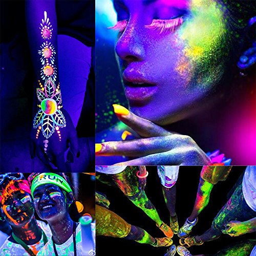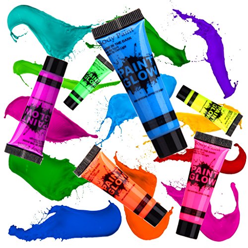 Studio : tobnbo Publisher : tobnbo Binding : Misc. Product Description Tips: * Note that you can charge these body paints with ANY LIGHT SOURCE, the stronger the light the brighter and longer lasting the glow. This is a 3 in 1 paint which glows in the dark, is Neon Colour in daytime and will also glow under UV lighting. * Our product is soft, thick and creamy, it dries quickly on the skin and lasts all night! our product does not contain artificial fragrances. It is safe, non-toxic. * The paint is bright neon color in natural light and UV light shines brightly. * Fluorescent effect can be used to activities of prom, pub and other nocturnal activities.
