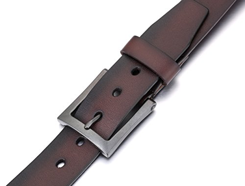 If you are looking for a belt with a strap that will not delaminates, get scratched, fade in color, or rip, look no further than Marino Avenue's Classic Jean Leather Belt. This single pin buckle belt is crafted from a 100% genuine leather strap and zinc alloy buckle, and is designed with your long-term use and enjoyment in mind. This is a classic "heavy duty" design that goes perfectly with denim jeans, or any casual or dress pants.Product Features:
