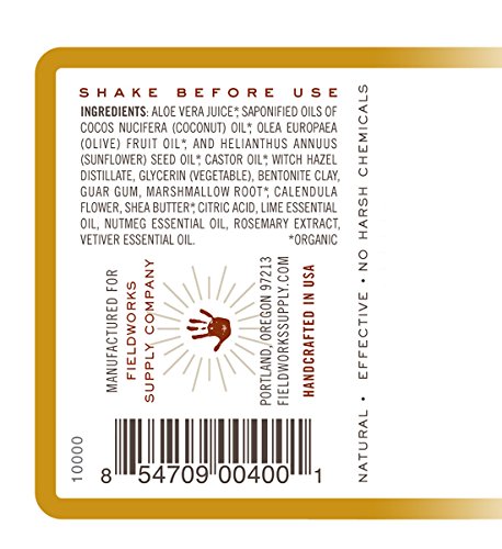 EARTHLY INGREDIENTS - Like Calendula, Rosemary and Vetiver - For Skin Irritation and moisturizing. Aloe, Saponified Oils of Coconut, Olive and Sunflower Are What Lather and Lubricate. All Mingle To Provide The Fresh, Earthy Scent - Like Walking In Nature - No Fake Perfumes Here.
