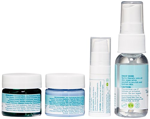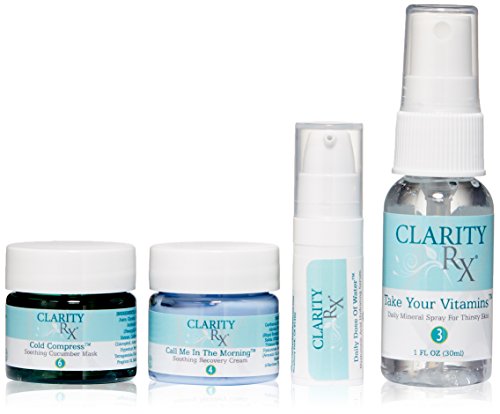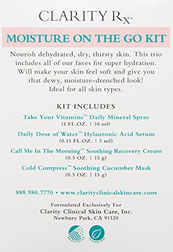 This kit includes: 1oz. Take Your Vitamins Daily Mineral Spray, 5 ml. Daily Dose of Water Hylauronic Acid Serum, .5 oz. Call Me In The Morning Soothing Recovery Cream and .5 oz. Cold Compress Soothing Cucumber Mask