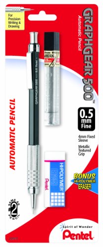Pentel Graph Gear 500 Automatic Drafting Pencil with Lead and Mini Eraser, 0.5 mm (PG525LEBP)