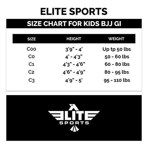 NO SHRINKING - Made from pre-shrunk fabric you’ll never have to worry about your kid’s BJJ GI shrinking after the first wash. Just wash this youth ELITE SPORTS ULTRA LIGHT JIU JITSU GI in cold water and hang to dry.