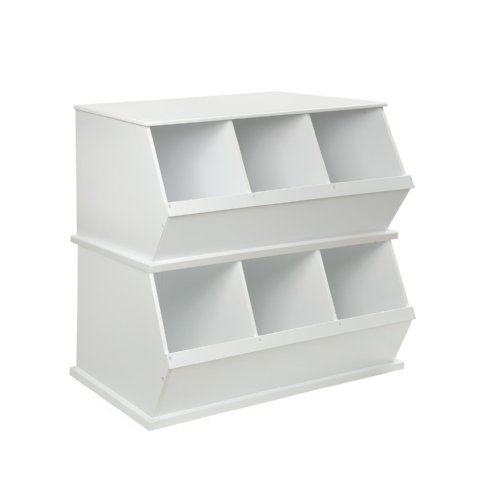Stackable storage bin. Non-toxic painted white finish brightens any room. Constructed of durable wood composites. Each cubby measures: 11L x 17.5W x 15.6H inches. Overall dimensions: 37L x 19.3W x 17H inches.Feature