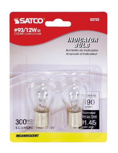 Satco S3723 12V SC Bayonet Base 12-Watt S8 Light Bulb, Clear