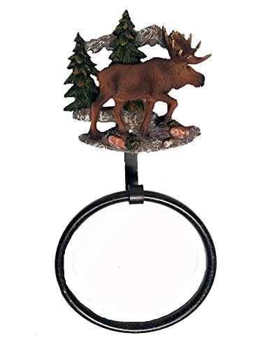 - Moose towel ring features a moose in a pine trees and mountain scene
