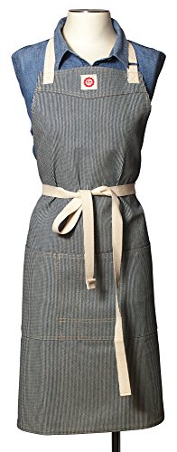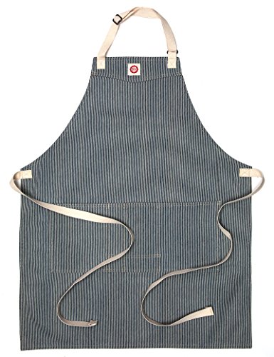 Raw Materials Design Demi-Chef Apron, Made in USA, Railroad Denim