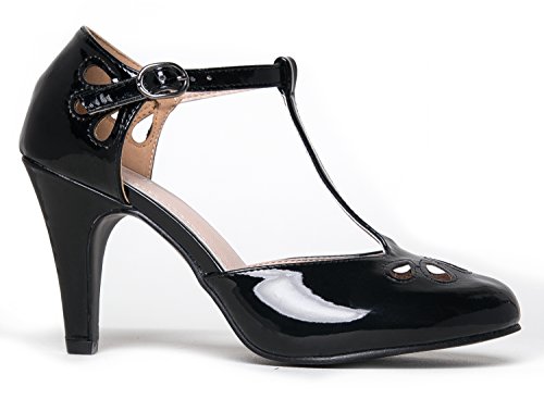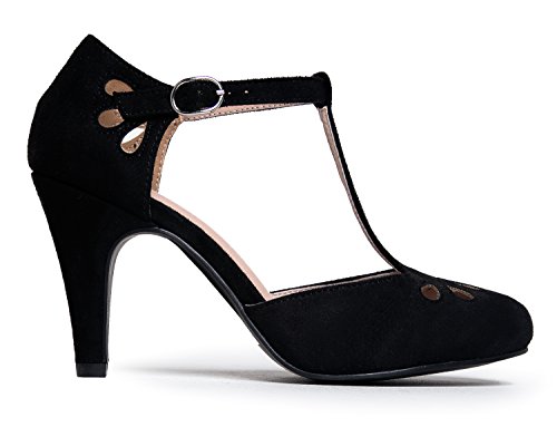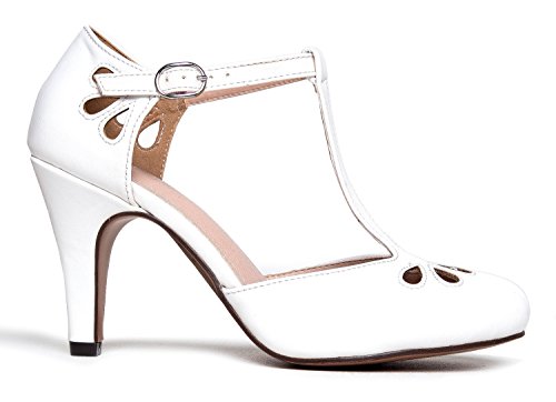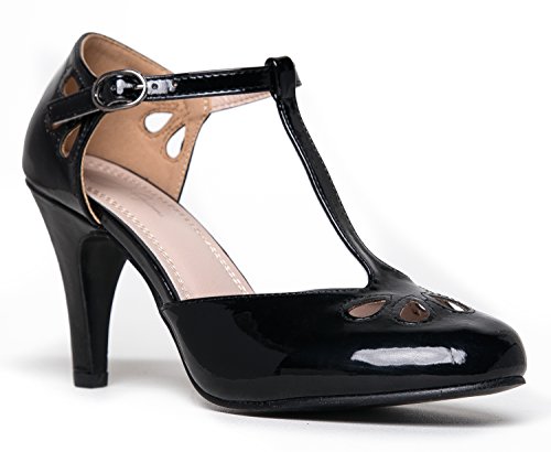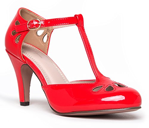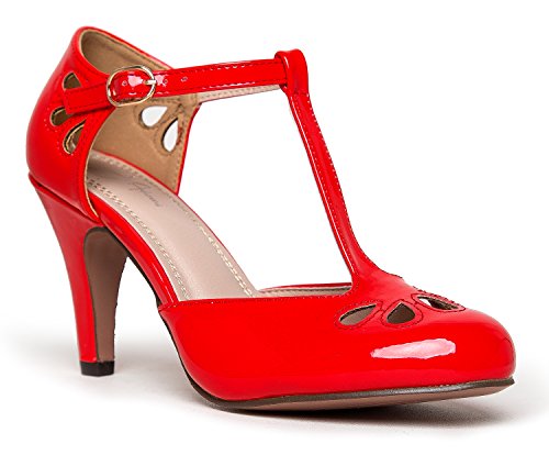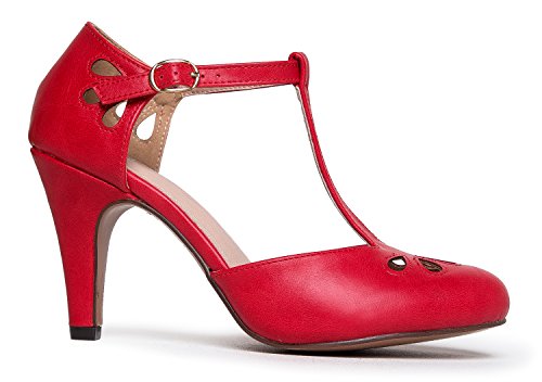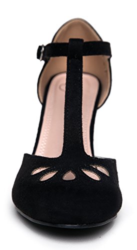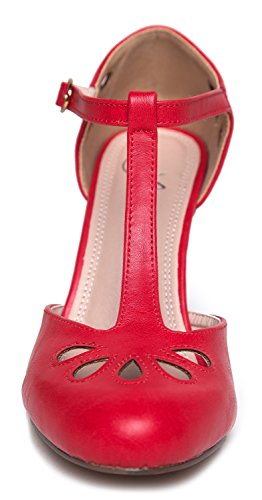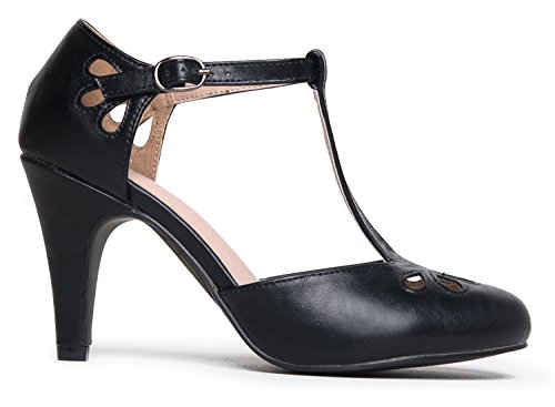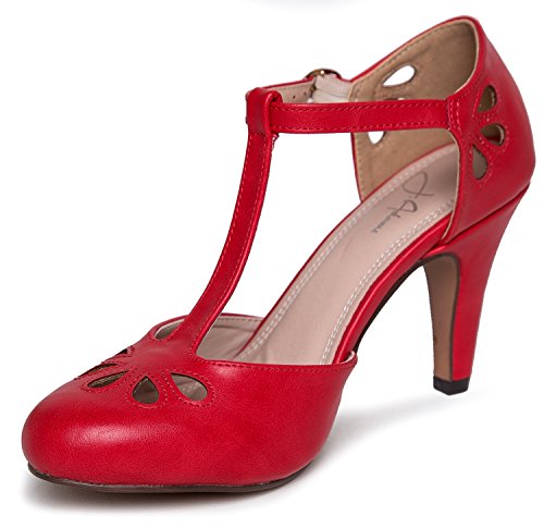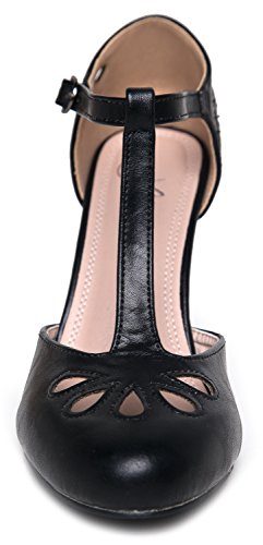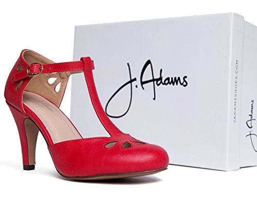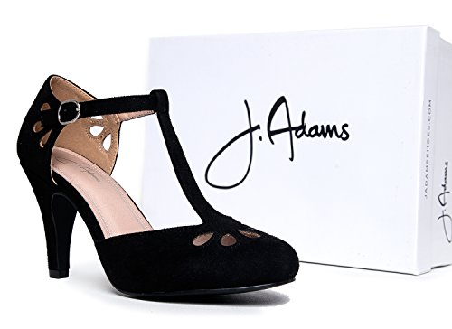 | J. Adams Mary Jane Pumps - Vintage Tear Drop Cutout Low Kitten Heels ? Retro Round Toe Adjustab... |