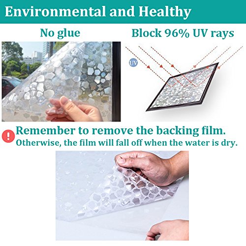 - 【Reusable Static Cling】This window film is no-glue, easy to position and remove without any residue or any harmful substances release. So it can be reused if not damaged or smudged.