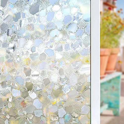 - 【Only 50 pcs for Cyber Monday Best Deal, price will recover to $12.99 once as discount quantity are sold out!!! Order now while they last!】Notice: This window film is transparent, not a multicolored one. Privacy rating:★★☆☆☆, decorative window film(Mild privacy, not recommended for bathroom). Flash hexagon patten, provides privacy and allow light in, colorful effect only shows up under direct light.