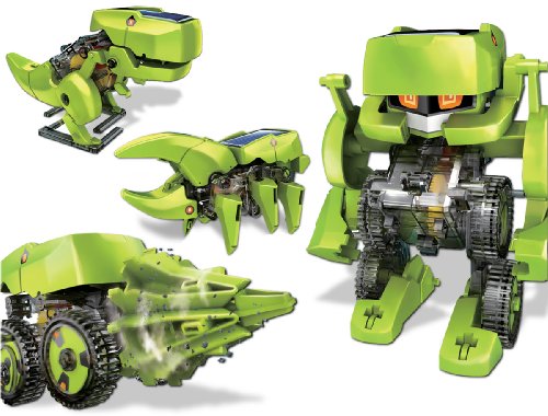 T4 Transforming Solar Robot. OWI's geek squad has dusted off their labs coats and goggles to concoct their latest triumph.T4 Transforming Solar Robot. T4 not only has more transformations but also comes equipped with larger parts, meaning that your younger child does not have to be excluded from high quality robot fun. T4 is completely solar-powered so you never need to buy batteries. Not only will T4 provide your child with a new understanding of solar power as a source of renewable energy, but will also get your kids outdoors for some wholesome fun in the sun. This kit gives your child the option to easily transform between one of four different modes: Robot - walking legs as well as moving wheels. Insects - 6 walking legs as well as moving jaws. T-Rex - 2 walking legs and moving jaws. Drill Vehicle - similar to a miner's driller/drilling bit and moving wheels. If your children are glued to smart-phones, give them an opportunity to acquire solar power knowledge, learn about mechanical transmissions and get them outside to play. Amazingly, you might find yourself engaged in conversation with your child, thanks to their newly acquired expertise!