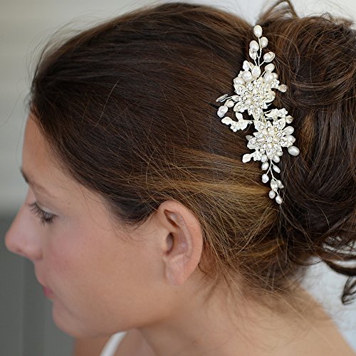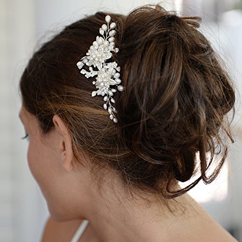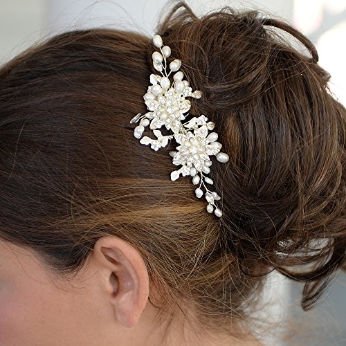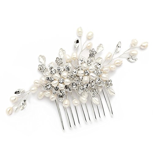 Mariell Genuine Freshwater Pearl Wedding Hair Comb - Designer Bridal Headpiece with Crystal Sprays