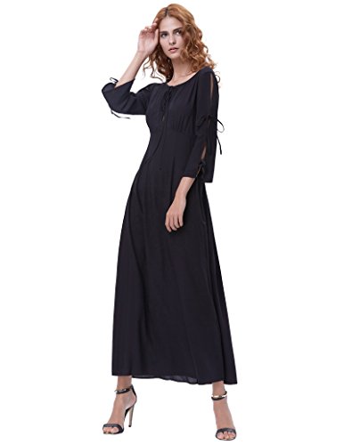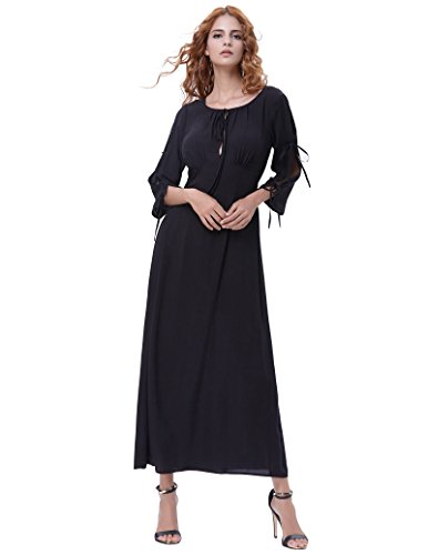 -. Feature : The maxi dress features ruched bodice, 3/4 lace-up sleeves, crew neck with self-tie strap, cutout front accent / Back waist is well elastic, which can make you more comfortable / Hand Wash COLD, Low Iron if Necessary / Package Contents: 1x Dress (No accessories included) / NOTICE: Before order, please carefully read the Size Chart we provided in the pictures (Not Amazon size chart)