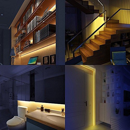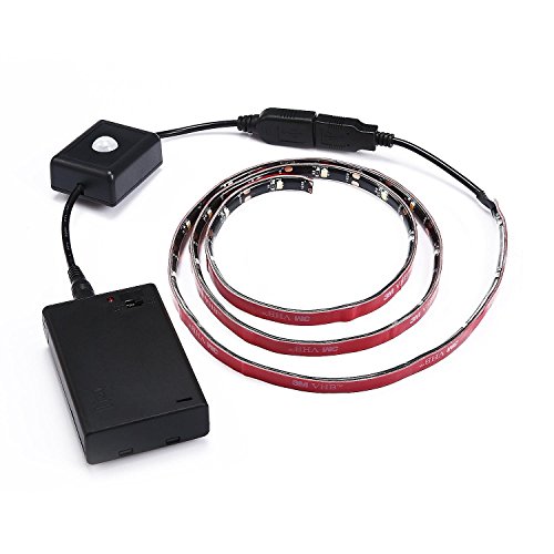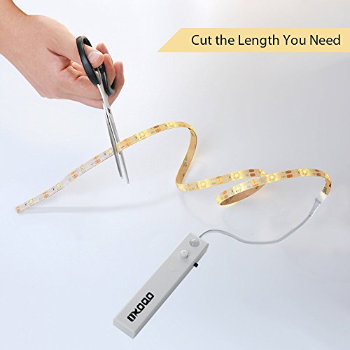 OXOQO Led Strip Rope Light Kit 1M 30 LED Battery Powered with PIR Auto Sensor Motion for Kitchen Bed Closet Cabinet Stair Hallway Washroom, Stick-on Anywhere (1-pack No Battery Included)