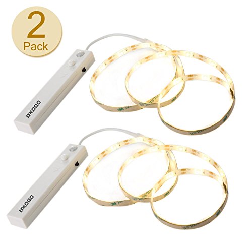 Led Strip Rope Light Kit, OXOQO Tape Light Stair Night Step Lighting with Motion Sensor for Kitchen Cabinets Bed, 2 Pack(4 AAA Batteries Operated, Not Included)