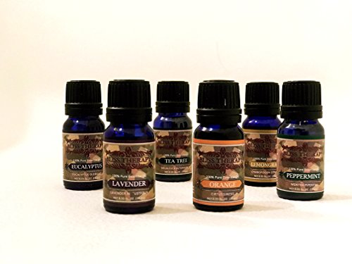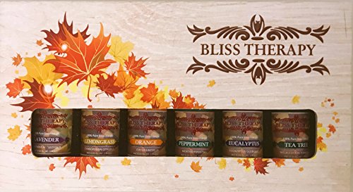 Bliss Therapy 100% Pure & Therapeutic Grade Essential Oils Gift Set, 6 Bottles, 10ml each, (Lavender, Tea Tree, Eucalyptus, Lemongrass, Orange and Peppermint)
