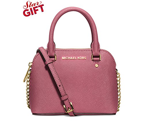 -. Brand : MICHAEL Michael Kors -. Color : Tulip -. Department : womens -. EAN : 0715854386810 -. Feature : Saffiano Leather / Interior features 1 zip pocket and 1 slip pocket / Double handles with 3-1/4" drop; adjustable strap with 23-1/4" drop / 7-1/2" W x 5-1/4" H x 3" D -. ProductGroup : Shoes -. ProductTypeName : HANDBAG -. Size : Mini -. Title : MICHAEL Michael Kors Womens Cindy Mini Crossbody (Tulip) -. UPC : 715854386810
