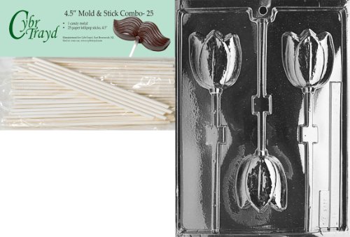 Cybrtrayd Tulip Lolly Fruits and Vegetables Chocolate Candy Mold with 25 4.5-Inch Lollipop Sticks