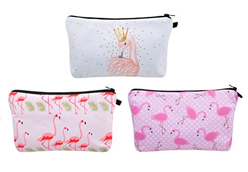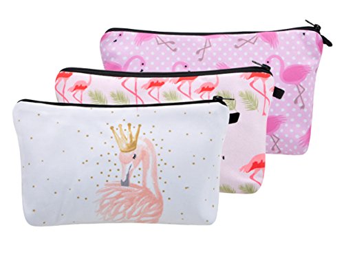Vercord 3pcs Unicorn Makeup Bag Funny 3D Printing Women Travel Portable Cosmetic Bag Pouch Makeup Holder Organizer, Flamingo