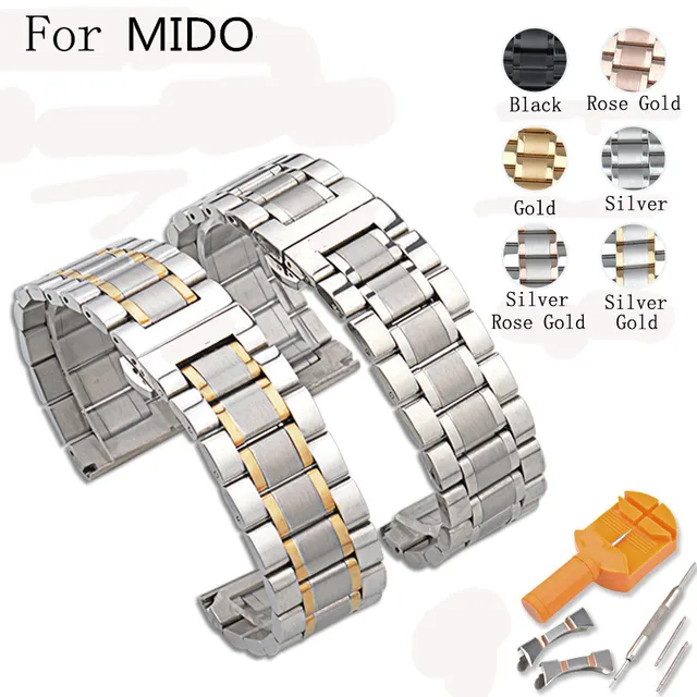 | [해외]14 미리메터/16 미리메터/17 미리메터/18 미리메터/19 미리메터/20 미리메터/21 미리메터/22 미리메터/23 미리메터/24 미리메터 실버 블랙 전체 스테인레스 스틸 시계 스트랩 Wacthband 대한 미도 함께 로고 |