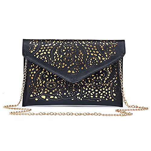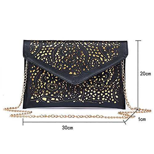 Obazidou Hollow Out Flower Envelop Clutch Chain Tote Shoulder Bag Handbag