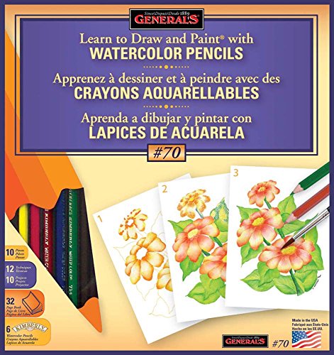 - Includes 6 watercolor pencils, 1 sharpener, 1 paint brush, pre-printed watercolor paper and a step-by-step instruction booklet