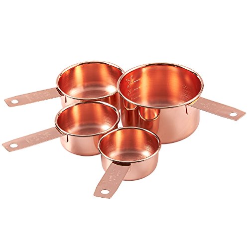 GET RECIPES RIGHT: Includes 4 Stainless Steel, copper-plated measuring table cups: 1/4 cup, 1/3 cup, 1/2 cup, 1 cup