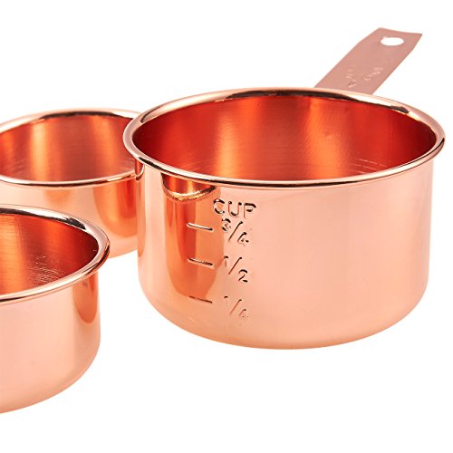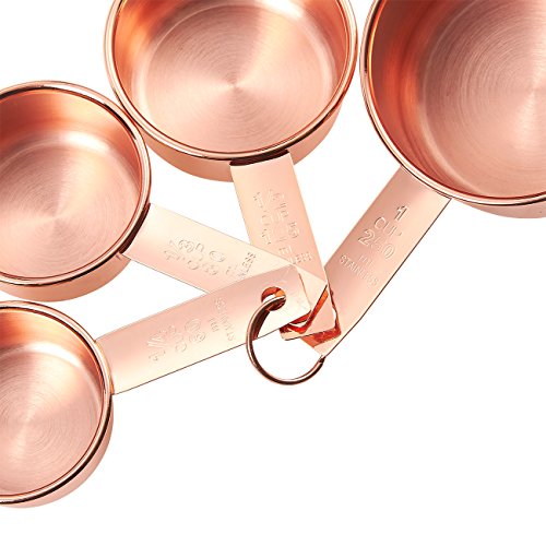 ULTRA-DURABLE: This set of 4 Measuring Cups are made of 410 Stainless Steel with copper coating and are rust resistant, corrosion resistant and shatter-proof
