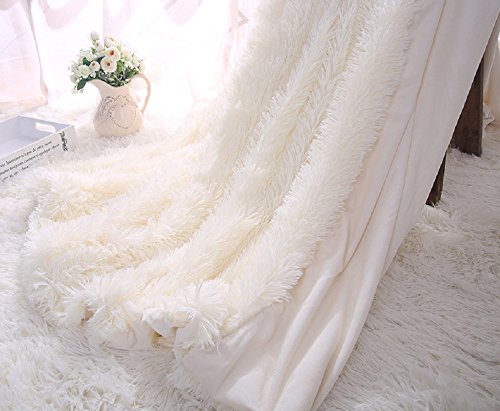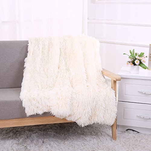 YOUSA Super Soft Shaggy Faux Fur Blanket Ultra Plush Decorative Throw Blanket 51''63'',Cream White