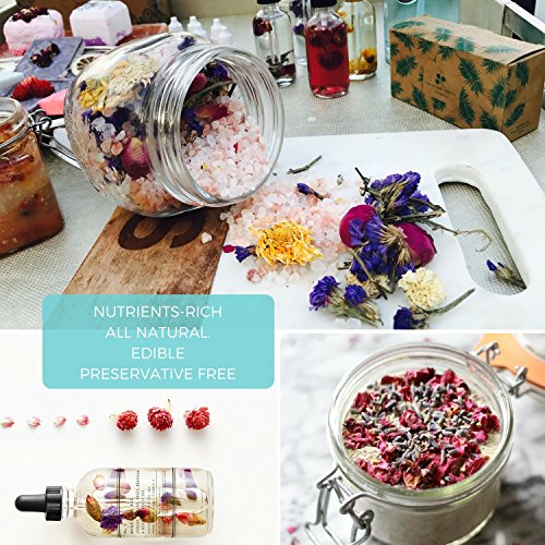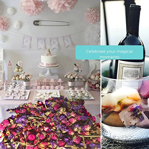 All Natural Petal Confetti Potpourri-Rose Bud, French Satire Forget Me Not, Globe Amaranth Dried Flowers for Bath, Soap Making, Food Coloring, Flower Petals for Bath Bomb