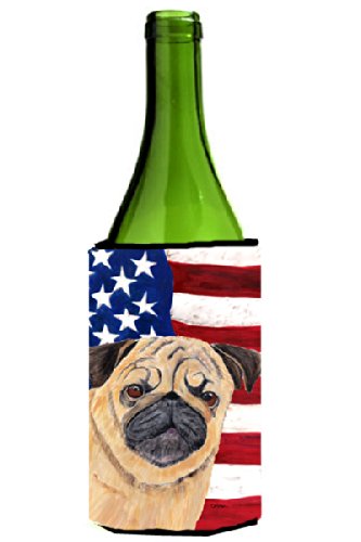 USA American Flag with Pug Wine Bottle Beverage Insulator Beverage Insulator Hugger SC9006LITERK