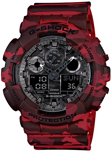 Brand, Seller, or Collection Name:Casio Model number:GA-100CM-4AJF Part Number:GA-100CM-4AJF Model Year:2014 Item Shape:Round Display Type:LED Case diameter:5.1 centimeters Case Thickness:16.9 millimeters Band Material:Resin Band width:16.9 millimeters Band Color:RED AND BLACK Dial color:BLACK Special features:japan import Item weight:2.56 Ounces Movement:Quartz